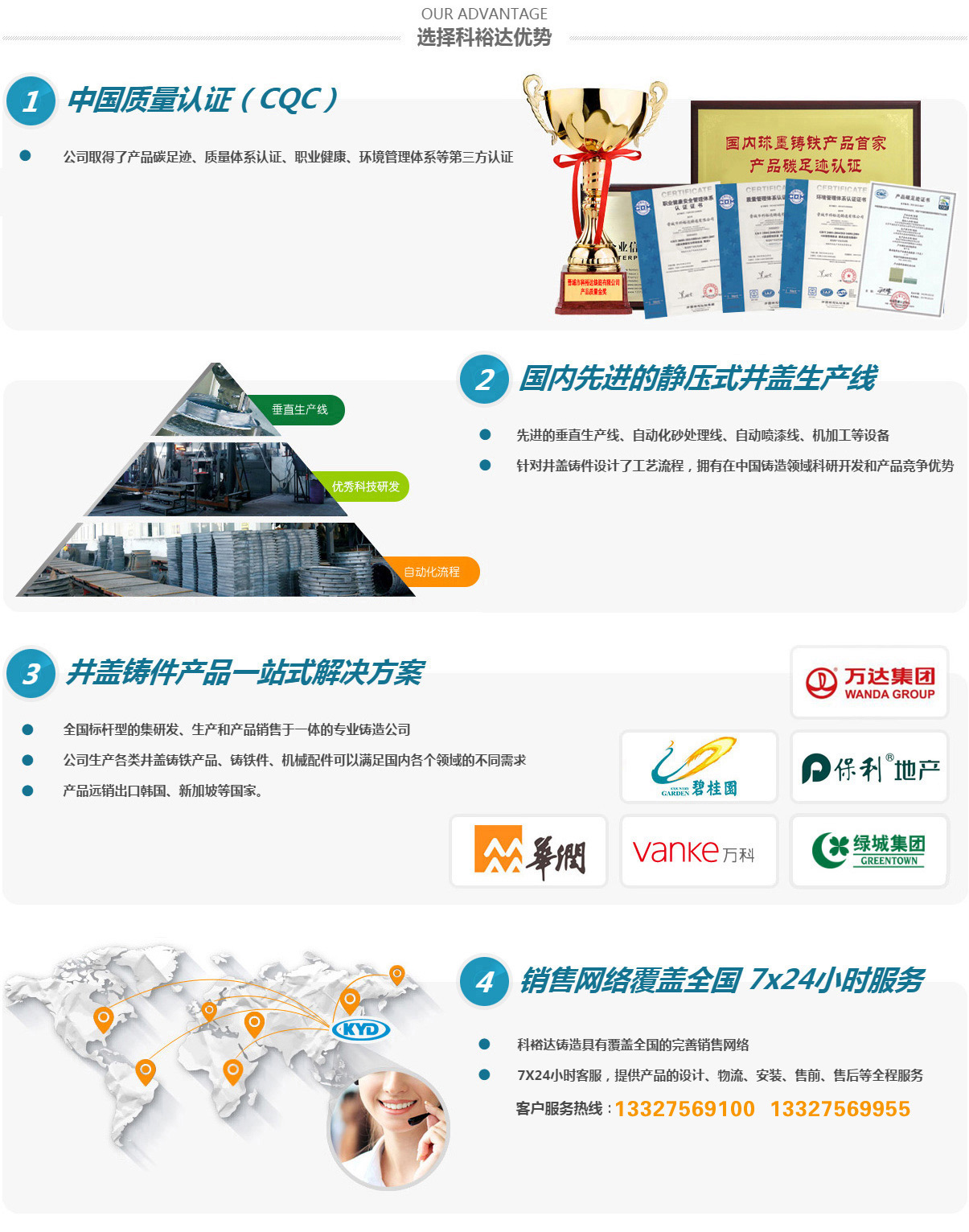 晉城市科裕達(dá)鑄造有限公司,位于山西省晉城市南村鎮(zhèn)智能綠色鑄造創(chuàng)新產(chǎn)業(yè)園區(qū),成立于2014年2月,注冊資金2億元整,產(chǎn)量10萬噸。經(jīng)過這些來的發(fā)展,已經(jīng)成為全國集研發(fā)、生產(chǎn)、銷售各類球墨鑄鐵井蓋、箅子產(chǎn)品于一體的專業(yè)鑄造公司,是已知國內(nèi)較大的球墨鑄鐵井蓋生產(chǎn)基地。2016年10月,公司順利通過了二級(jí)安全生產(chǎn)標(biāo)準(zhǔn)化的評(píng)審,正式成為一家二級(jí)安全生產(chǎn)標(biāo)準(zhǔn)化企業(yè)。2017年3月,山西省安全生產(chǎn)監(jiān)督管理局授予公司2016年冶金工貿(mào)行業(yè)“安全生產(chǎn)先進(jìn)單位”稱號(hào)。2017年11月被山西省中小企業(yè)局授予“專精特新”中小企業(yè)榮譽(yù)。2020年8月被認(rèn)定為國家高新技術(shù)企業(yè)。2021年5月被中國鑄造協(xié)會(huì)認(rèn)定為“單項(xiàng)冠軍企業(yè)”。2021年9月被山西省中小企業(yè)局授予“專精特新小巨人”企業(yè)榮譽(yù)。2022年被中國鑄造協(xié)會(huì)認(rèn)定為第四屆鑄造行業(yè)排頭兵企業(yè)。2023年7月被工信部認(rèn)定為“國家級(jí)專精特新小巨人”企業(yè)榮譽(yù)。2024年被省工信廳認(rèn)定有“省級(jí)綠色工廠”及“省級(jí)企業(yè)技術(shù)中心”。